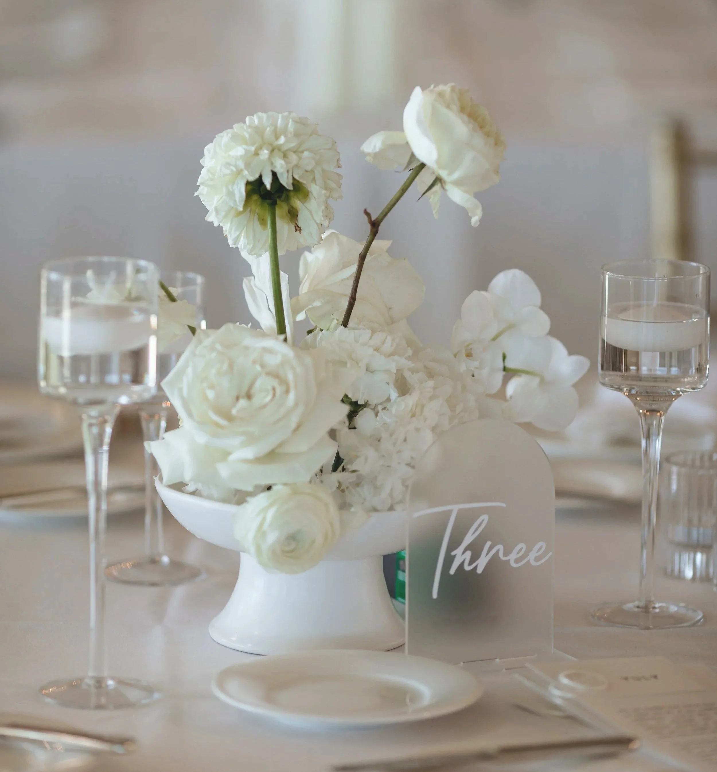 Prices vary depending on the size, type of flowers, and choice of vessel. Sales tax, along with fees for delivery, setup, strike, and production (which covers preparation and post-event cleanup), will apply based on event details.